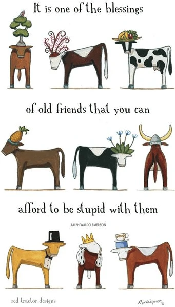 The verse on this tea towel is by Ralph Waldo Emerson and reads: “It is one of the blessings of old friends that you can afford to be stupid with them.”