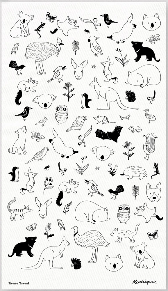 Gorgeous linen tea towels made in Melbourne using illustrations by Renee Treml. These Australian animals are screen printed with black ink on natural linen.